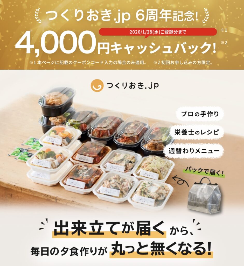 つくりおき.jp」では、初回限定のお試しセットやお得なキャンペーンは基本的に行われていません。